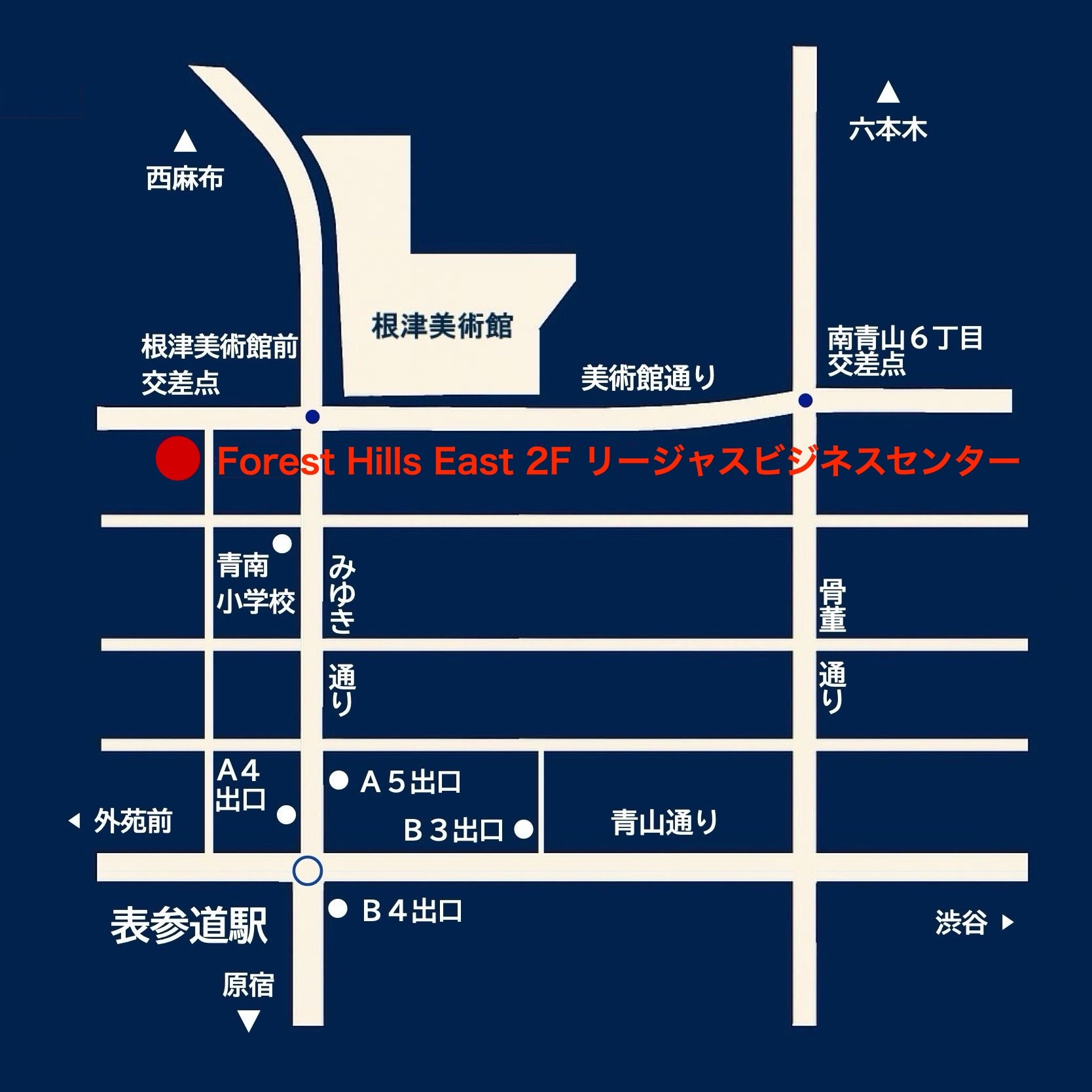 表参道駅を根津美術館方面に向かい「根津美術館」交差点至近